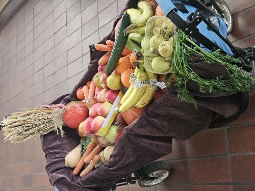 Die Kinder führten ein liebevolles Theaterstück über die Sonnenblume auf – vom kleinen Samenkorn bis zur leuchtenden Blüte. Anschließend konnten die gespendeten Erntegaben von den Familien gekauft werden.